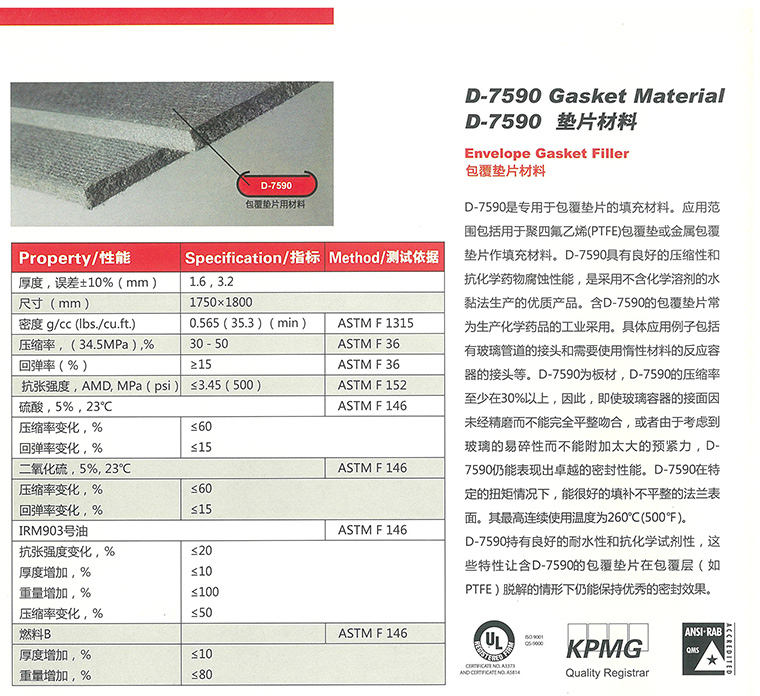 D-7590是我司推出的一款專(zhuān)用于搪玻璃反應釜的無(wú)石棉密封板